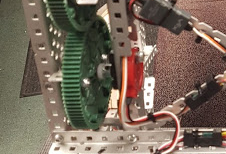 This low strength axle joint is used on one lower gear of 5225A's In the Zone Lift. Although the other gears use screw joints to minimize friction, this one utilizes an axle to translate the gear's rotation to a potentiometer, which measures the rotation of the gear to determine the lift's height.