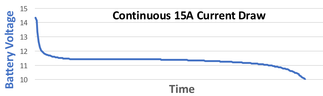 V5 Robot Battery Li-Ion 1100mAh was designed to run ten V5 motors at full power continuously. The V5 Robot Battery has a higher 12.8V nominal voltage. The battery charges up to 14.6V and runs down to 10V. Due to the very steady output voltage of these batteries, the V5 Brain cannot determine remaining capacity using the typical method of measuring voltage and estimating capacity. Instead, the V5 battery pack has a battery management system that measures changes in electrical charge (coulombs) into and out of the battery during charge and discharge. From this data, the battery determines the actual amount of remaining power.